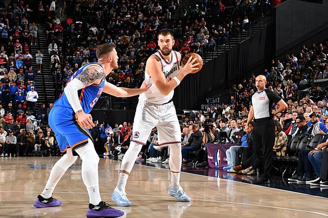 本場比賽中,快船的先發(fā)中鋒伊維察-祖巴茨(Ivica Zubac)的表現(xiàn)依然是沒有明顯的起色。祖巴茨全場出場25分37秒,投籃8中3,罰球2中1,得到了7分7籃板2助攻2搶斷的數(shù)據(jù),其中還包括了4個前場籃板,還有2次失誤和2次犯規(guī),正負(fù)值為+7。祖巴茨在進(jìn)攻端的效率非常一般,他的籃下得分能力依然是沒有發(fā)揮出來,他在傳球和策應(yīng)方面的能力也沒有展現(xiàn)出來,他在進(jìn)攻端的效果顯然是很不理想的。不僅如此,祖巴茨在防守端也顯得有些力不從心,他在籃板保護(hù)方面的能力都沒有展現(xiàn)出來,他在內(nèi)線防守方面的作用也嚴(yán)重不足。祖巴茨在本場比賽中的表現(xiàn)明顯偏軟弱了一些,對手也可以隨意對他鎮(zhèn)守的內(nèi)線發(fā)起攻擊,這就顯得有些令人尷尬了。